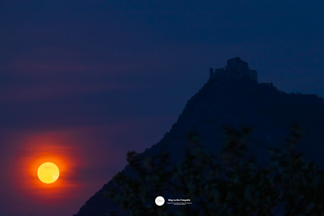 Per ammirare appieno questo evento ho deciso per cui di raggiungere il comune di Condove e cercando un campo visivo sgombro da alberi e case, sono riuscita nell'intento di allineare la luna piena dei fiori di maggio alla Sacra di San Michele.